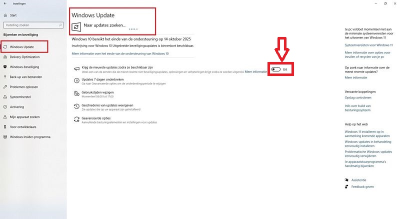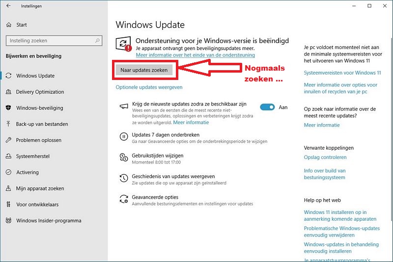 - Soms is meerdere keren 'Naar updates zoeken' noodzakelijk, en de pagina