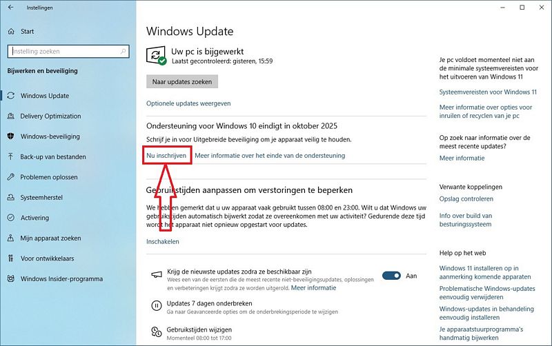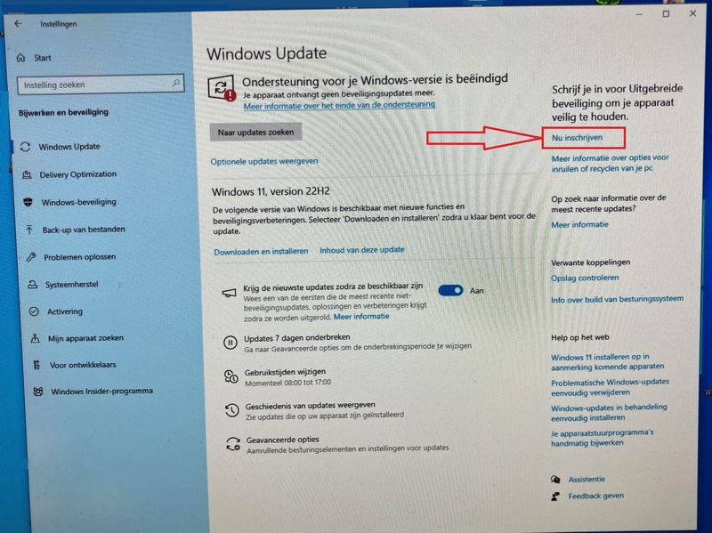 Ook deze Windows 10 computer ontvangen de link: 'Nu inschrijven' ...