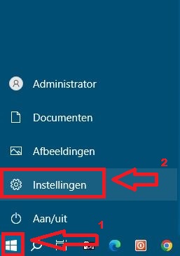 Klik hiervoor in Windows 10 op: Start - Instellingen en kijk dan links boven