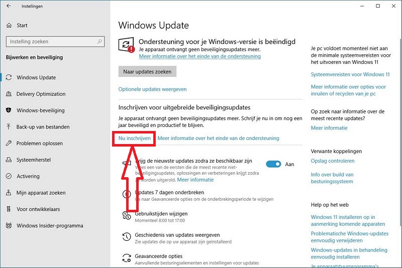 Inschrijven voor het Windows 10 Extended Security Update Program ( ESU )