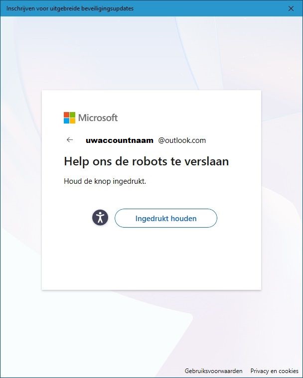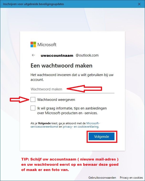 - Bewaar uw Microsoft Accountgegeven op een goede en veilige plek