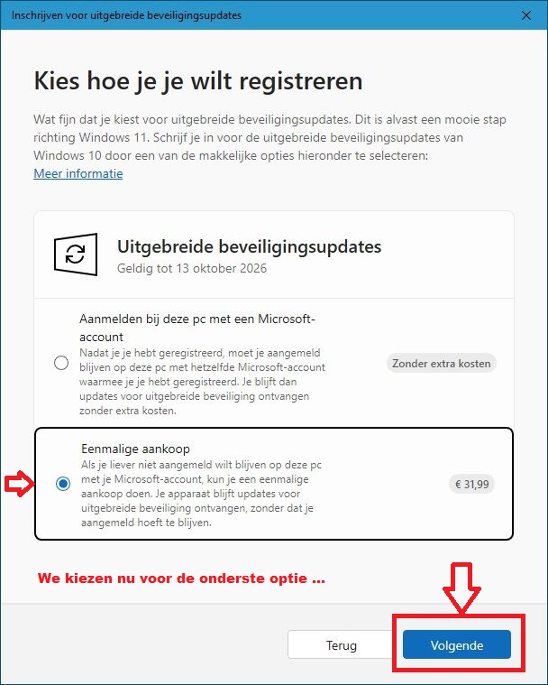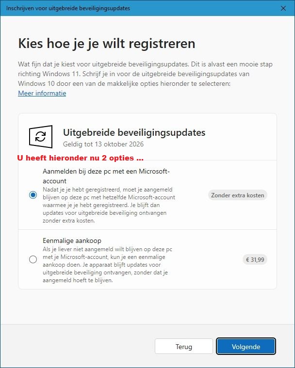 KEUZE 2. Hoe U zich kunt aanmelden voor het Windows 10 ESU programma,