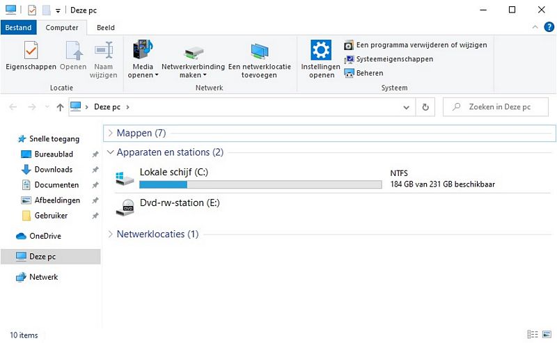 de Verkenner en zult U zien dat er een nieuwe schijf aanwezig is, binnen Windows 10.