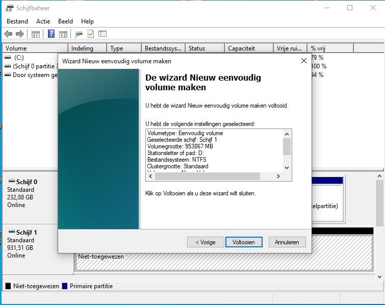 Daarna is de schijf gereed voor gebruik en zal Windows 10 de schijf