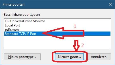 - U ziet nu een scherm met: Poortnaam en met: Printernaam of IP-adres
