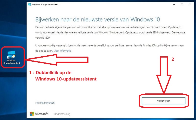 - Klik op: Nu bijwerken, indien U nog niet beschikt over de nieuwste versie van Windows 10