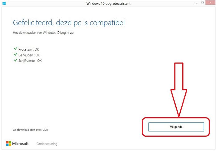 opgestart om de upgrade naar Windows 10 daadwerkelijk in gang te zetten ...